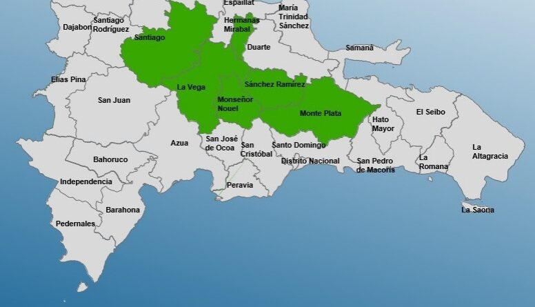 Las Provincias en alerta son: Monseñor Nouel, Sánchez Ramírez, La Vega, Hermanas Mirabal, Monte Plata y Santiago.